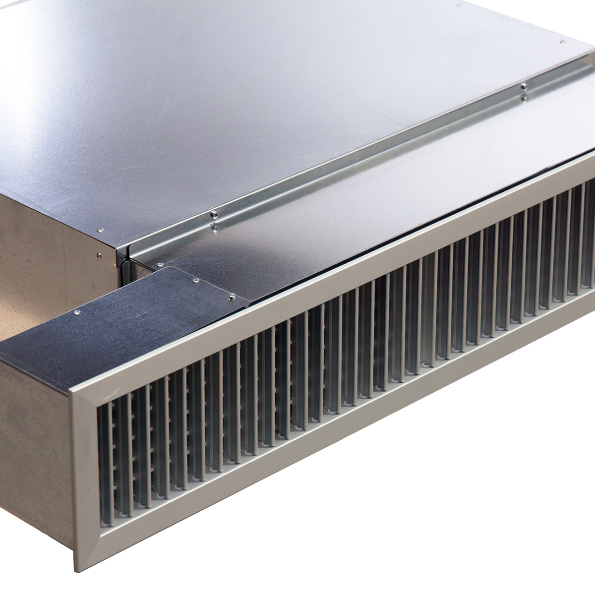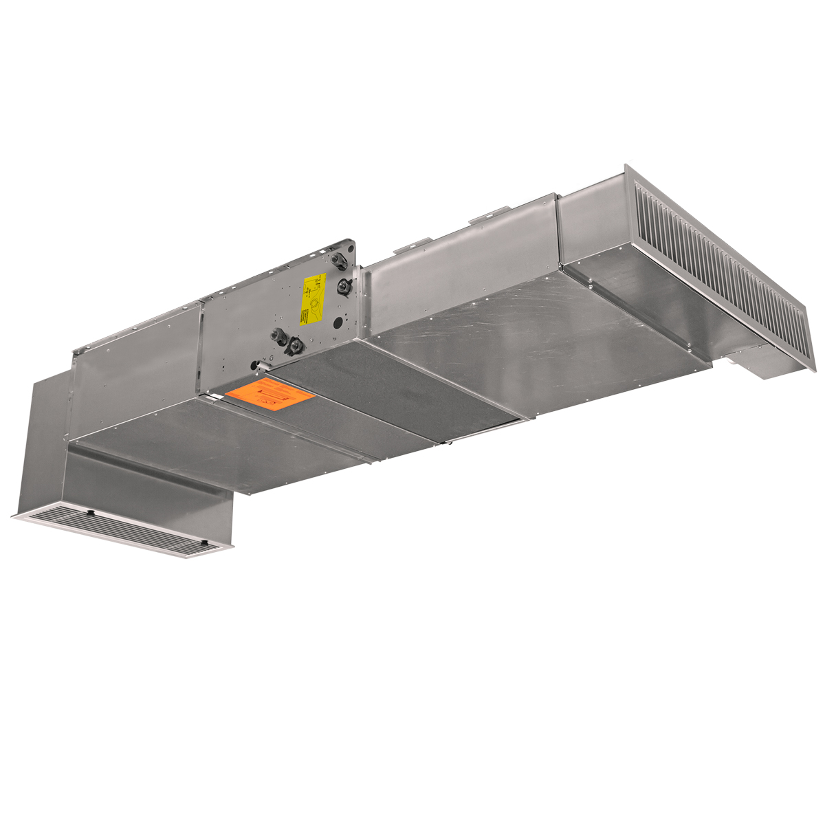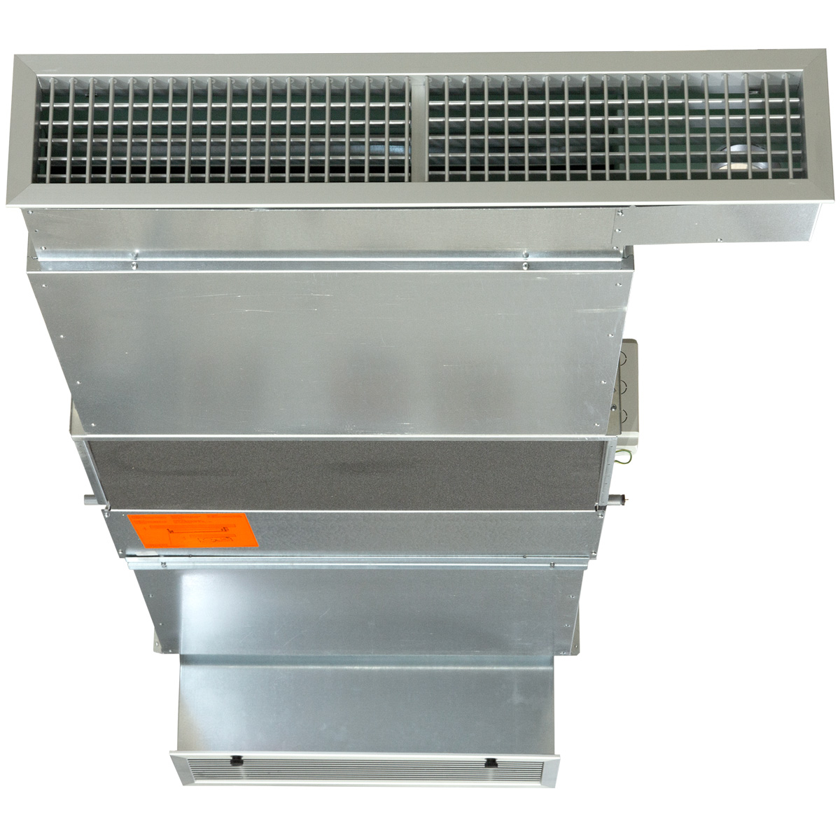 Efter gallret kommer en 90° vinklad insugningskanal. Kanalen är ljudisolerad. Den bygger 152 mm nedanför själva aggregatet, men kan kapas till önskad längd, anpassat till undertaket.