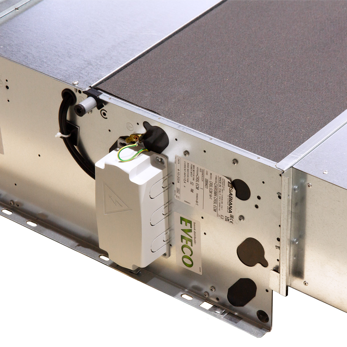 4. Fläktkonvektorn är en CRSL-ECM 14+1. Den är byggd kring ett chassi i 1 mm elförzinkad stålplåt, kondensisolerad med polyolefinmatta (klass M1).