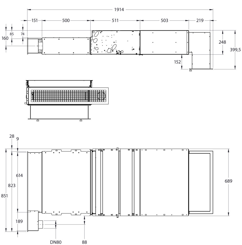 Dimension på tilluftskanalen är 80 mm. Utvändig diameter på kondensutloppet är 15 mm.